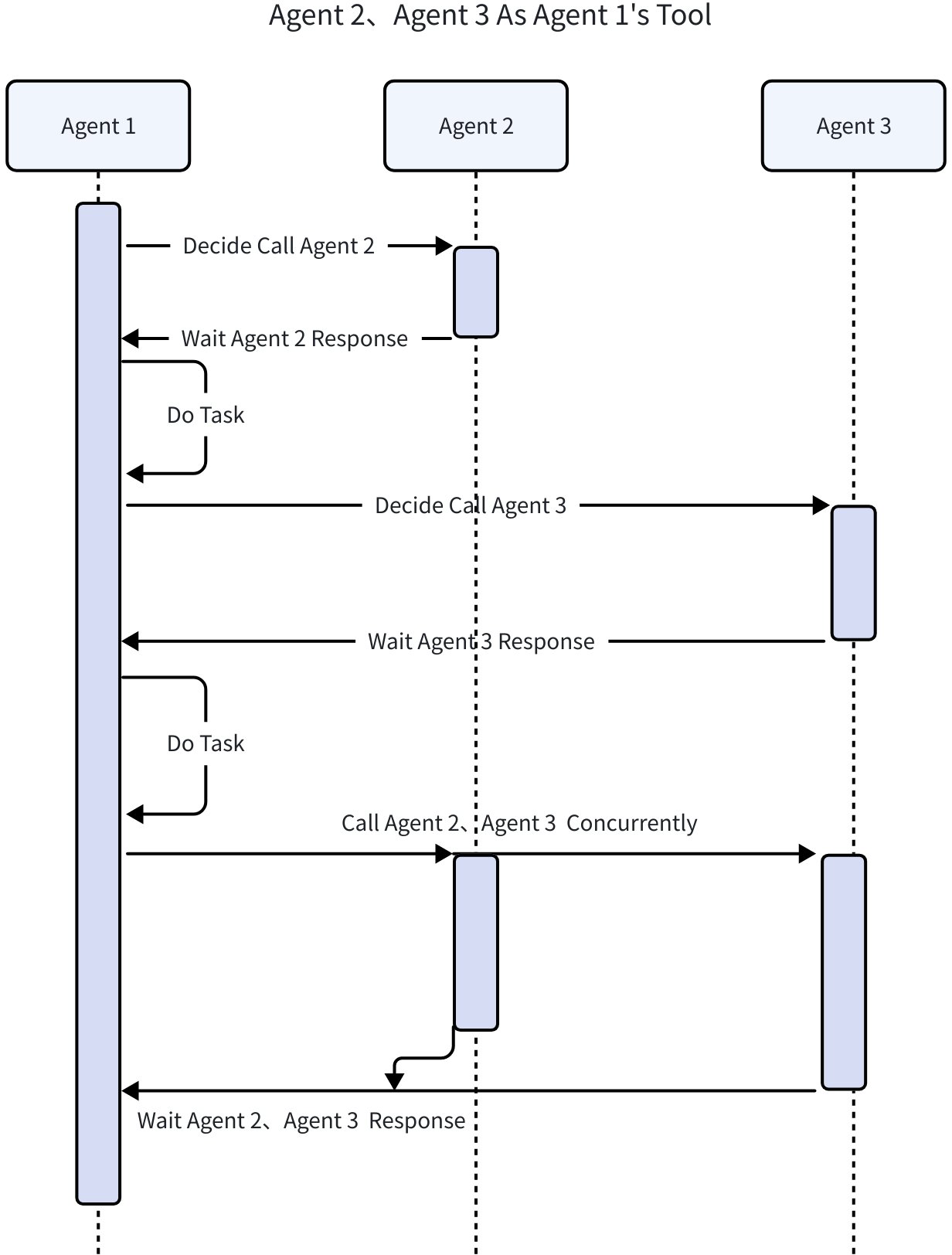 ToolCall (AgentAsTool)Treat an Agent as a tool call, wait for its response, consume its output, and continue processing
