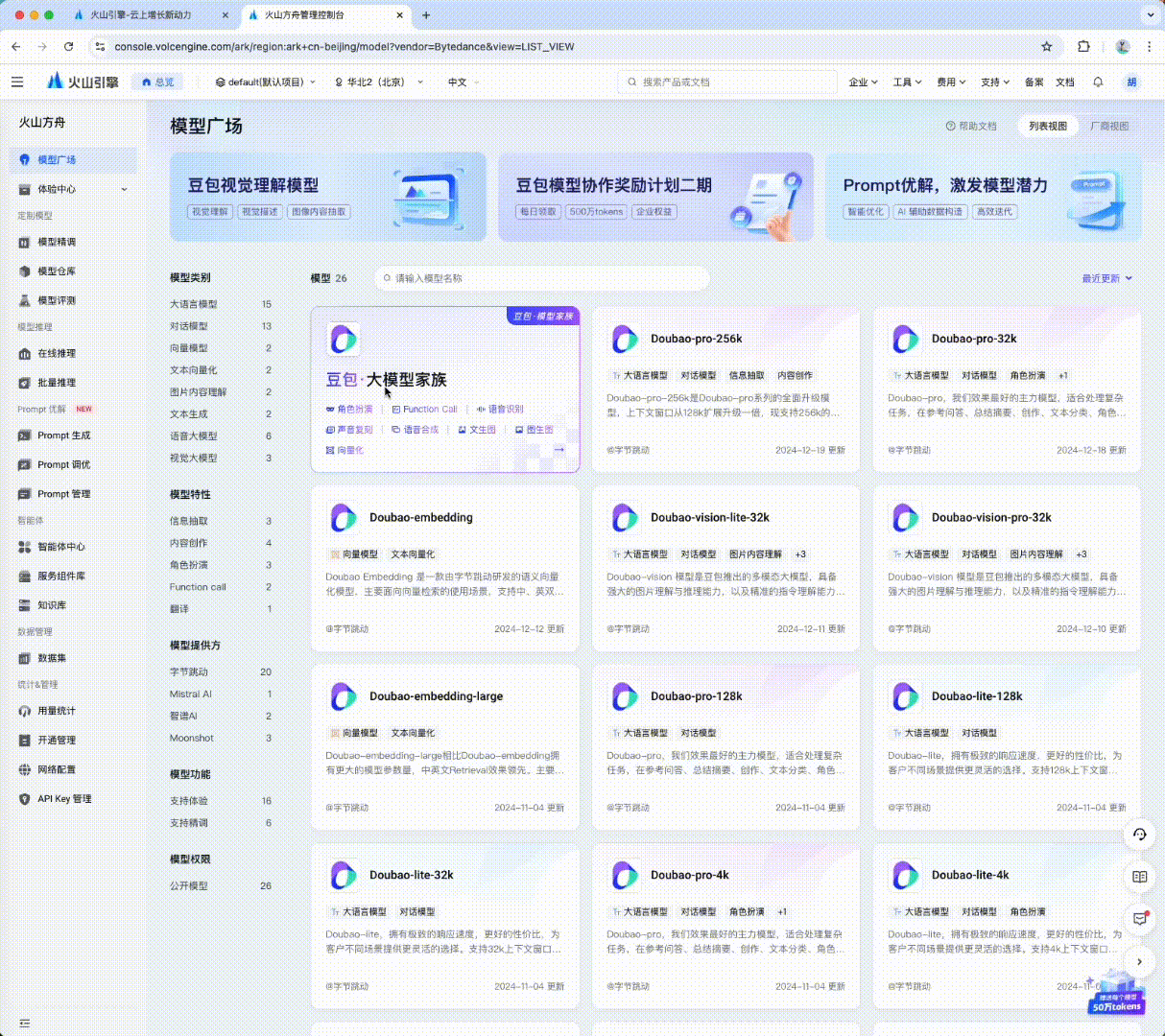 Volcengine Ark hosts Doubao models. Register resources (ample free quota available):