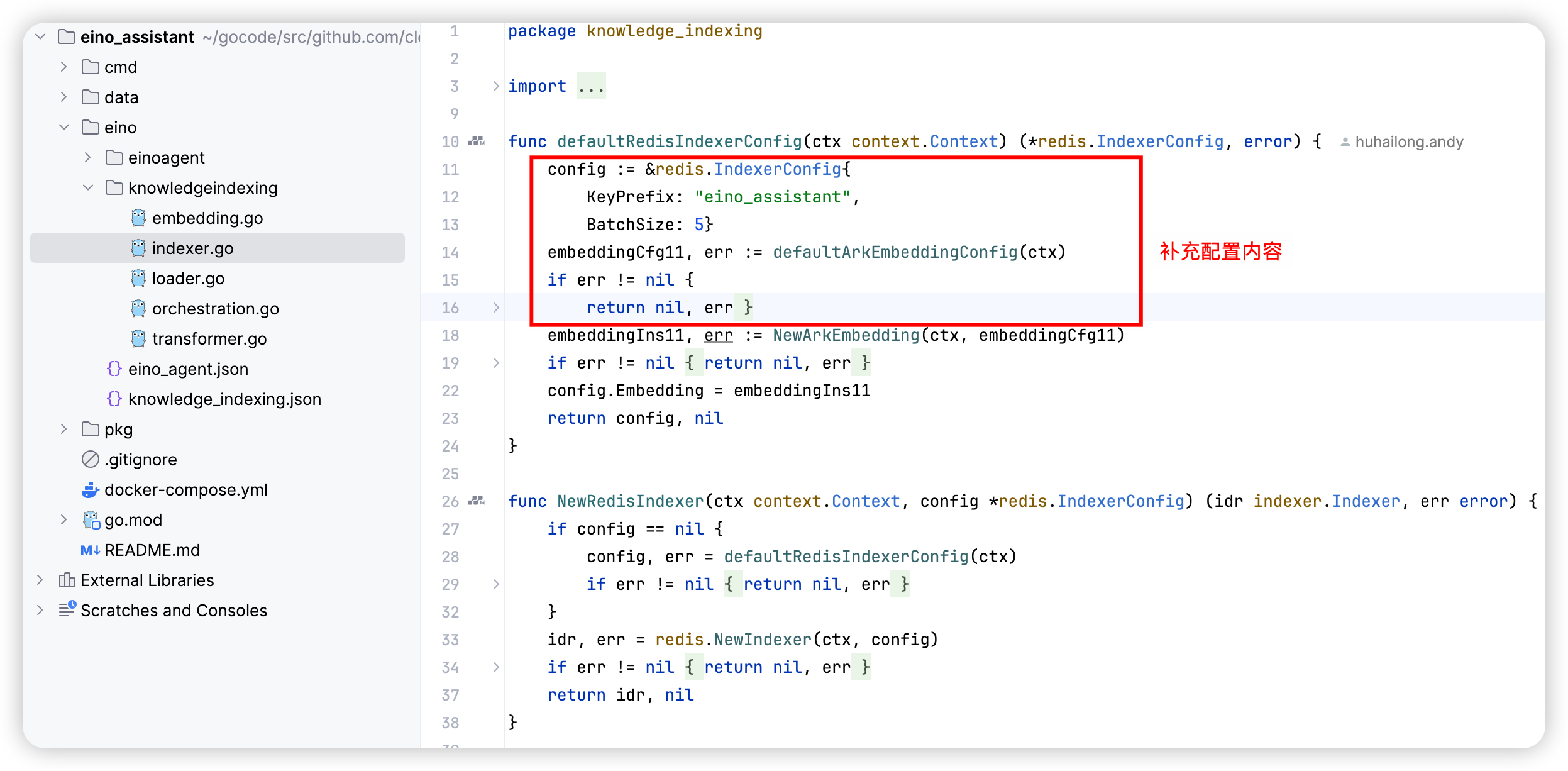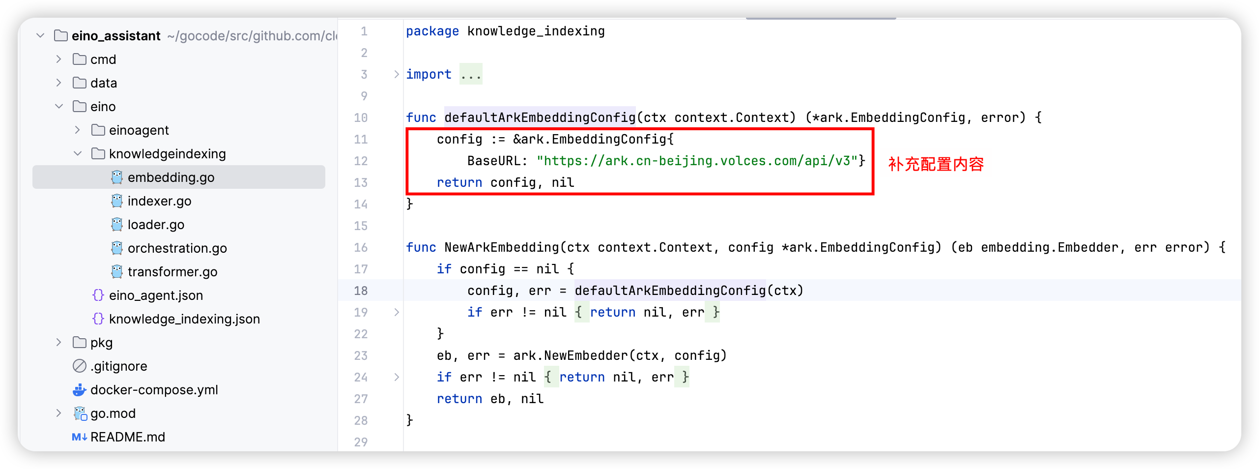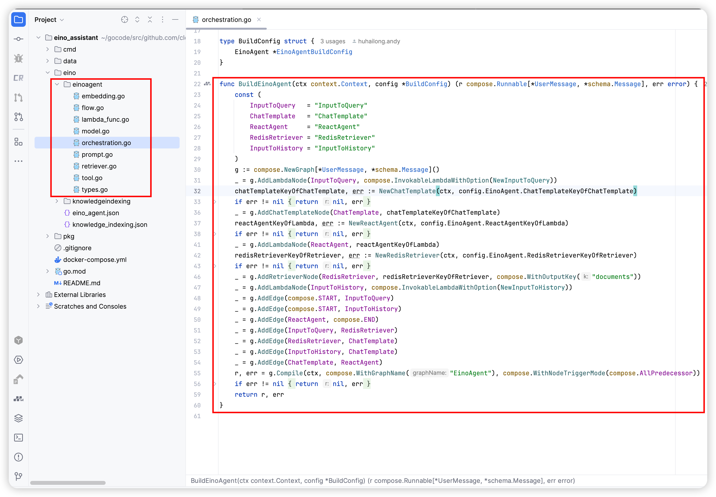 Sample repository path: https://github.com/cloudwego/eino-examples/tree/main/quickstart/eino_assistant