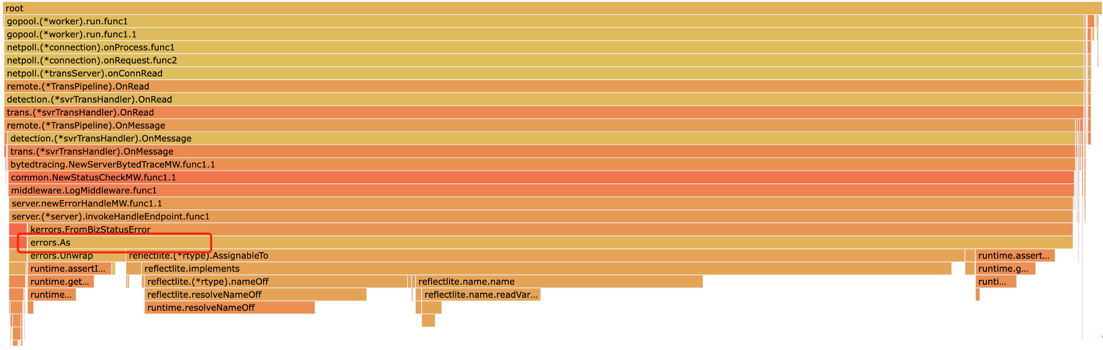 According to the CPU profile, there is a hotspot issue with errors.Is or errors.As, and the CPU usage even reaches its maximum.